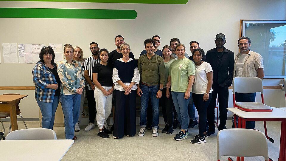 Die Einladung der Migrationsberatung für erwachsene Zugewanderte (MBE) zum Orientierungskurs der Volkshochschule (VHS) in Wittlich kam aus eigenen Reihen. Die Teilnehmenden haben die Wichtigkeit der Auseinandersetzung mit den Gesetzen und Regelungen des Aufenthaltsrechtes in Deutschland wahrgenommen. Durch die Leiterin des Orientierungskurses, Frau Ellen Meyer, die die Anregung der Teilnehmenden sehr positiv aufgenommen hat, wurde ein Kontakt zur fachlichen Migrationsberatung des DRK hergestellt. Am Mittwoch, den 03.09.2025, besuchte Herr Andalos Butterbach, MBE-Berater des DRK Kreisverbands Bernkastel-Wittlich e.V., den Kurs und gab einen Überblick über das Asyl- und Aufenthaltsrecht. Auch die diversen Schutzstatus, die Deutschland für Geflüchtete gewährt mit den verschieden erteilten Aufenthaltserlaubnissen wurden mit den Teilnehmenden thematisiert.