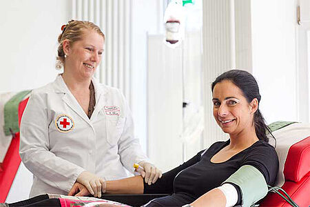 Blutspendetermin des DRK im Shoppingcenter Alexa am Alexanderplatz in Berlin: Blutspenderin